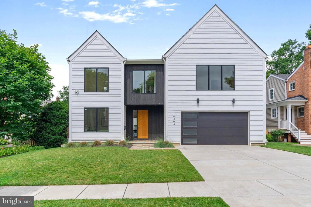 Completed in late 2021, this fully custom Scandinavian-inspired home is as pristine as it is beautiful. Form meets function with the steeply pitched gable roofs while crisp white horizontal siding converges with dramatic vertical charred Yakisugi shiplap at the covered entrance. Environmentally and financially friendly, this home boasts an owned solar panel system. Exceptional features of the sundrenched interior include solid white oak hardwood flooring finished on-site, 9-foot ceilings on all three levels, large-scale windows and sliding glass doors, custom shades, and a curated tile selection. Offering 5 bedrooms and 4.5 baths, the floor plan is open and efficient. Main level highlights include: 8-foot doors; a private office; a powder room with floating vanity; a large living room with a charred accent wall, a ledge with discreet storage cabinets beneath, and a 2-sided corner gas fireplace; an airy dining area with a sleek linear pendant light and glass door access to the rear grounds; a European dream kitchen with custom Marfa handleless cabinetry, an oversized contrasting center island, elegant quartz countertops and backsplash, Bosch stainless appliances, and a walk-in pantry; a mudroom with a built-in bench and cubbies against a shiplap wall. Flanked by a white oak slat wall and illuminated by oversized picture windows, the semi-open staircase ascends to the home’s upper level which offers a spacious primary retreat with an office alcove, 2 walk-in closets, and a gorgeous spa-like bathroom with a curbless walk-in glass shower and double floating vanities. Two additional ample bedrooms, each with stylish ensuite bathrooms and walk-in closets, grace the front of the house. A wonderful central family room and an adjacent laundry room complete the upper level. Providing inviting overflow and guest space options, the day-lit lower level offers a sizeable recreation room with a wet bar, two bedrooms with walk-in closets, a full bath with a glass-enclosed shower and built-in bench, and a variety of storage options. Outside, a lovely flagstone terrace with a gas line overlooks the large, lush fully fenced rear yard whereas a 2-car garage and concrete parking pad round out the front. Convenient to downtown Kensington, the Marc train, and two metro stations and in the Kensington-Parkwood/North Bethesda/Walter Johnson school zones, this location is exceptional.